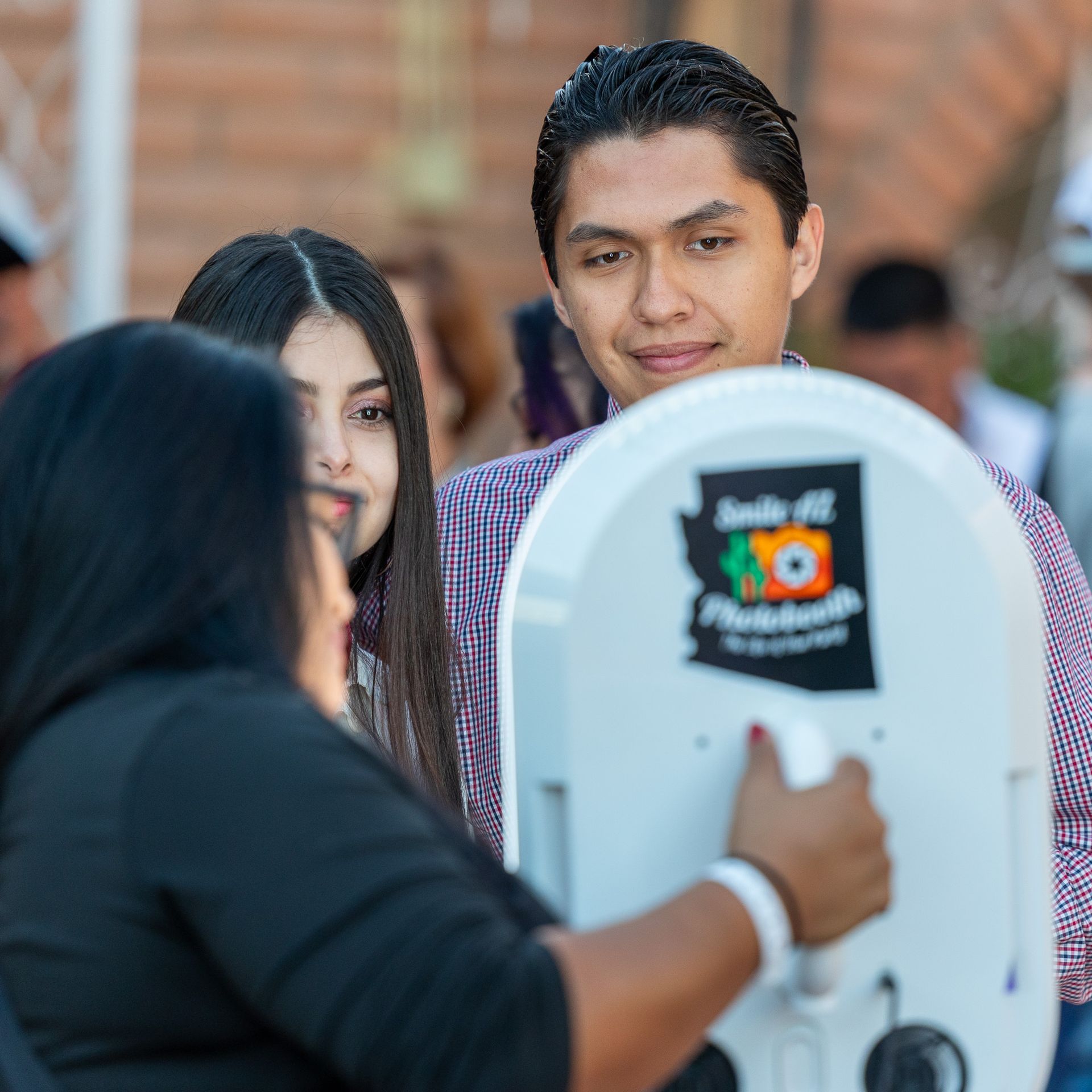 A roaming photo booth is a luxury, handheld photo experience that brings professional photography directly to your guests. Instead of waiting in line, our attendant moves seamlessly throughout your event capturing candid, high-quality photos on the dance floor, during cocktail hour, and in every unforgettable moment in between. This mobile photo booth experience ensures no moment is missed.